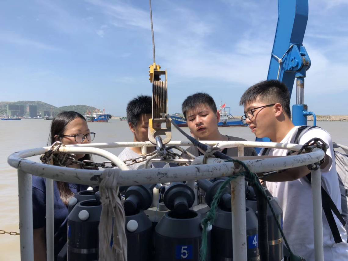 (带队教师 王龙樟)海洋综合调查是学生走向探索海洋旅程的必经之路。为提高我校海洋科学类专业学生的现场观测能力、数据获取能力,培养学生团结协作精神,适应海上工作环境,海洋学院在学校领导、教务处、财务处、学工处等单位的大力支持下,于2019年7月18日至28日组织2016级海洋科学菁英班26名同学在浙江舟山参加2019年长江口及邻近海域海洋科学联合实习活动,学院选派王龙樟、林卫兵、吕晓霞、肖军、夏峰五位老师带队实习并承担实习教学任务。