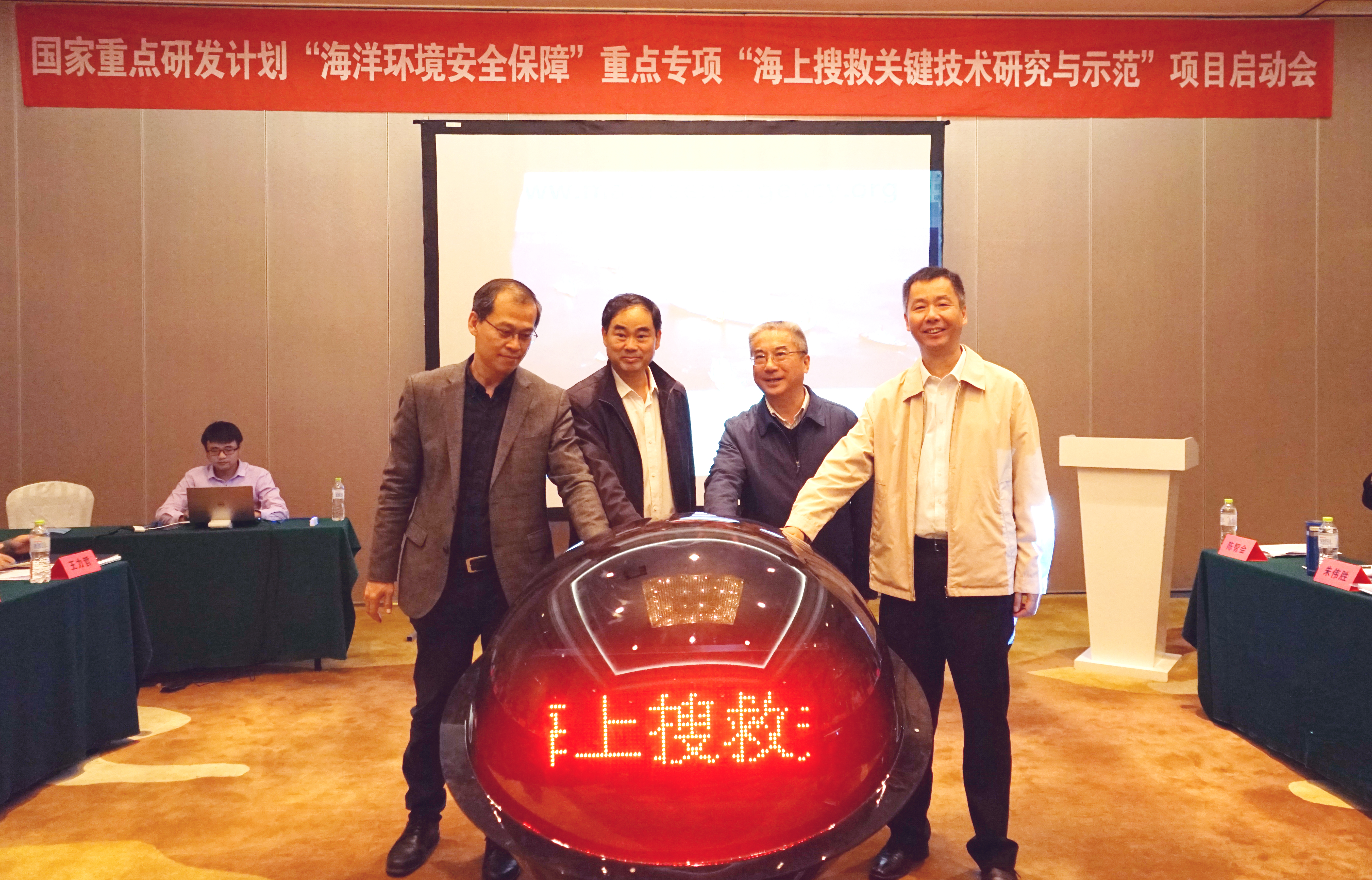 (与会嘉宾参加“海上搜救关键技术研究与示范”项目启动暨海上突发事件应急保障信息网网站上线仪式)