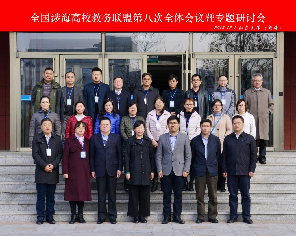 2018年12月1日,全国涉海高校教务联盟第八次会议暨专题研讨会在山东大学(威海)举行,厦门大学等16所高校30余人参加会议,山东大学副校长黄凯南出席会议并致辞。我校是全国涉海高校教务联盟发起单位之一,海洋学院党委书记成军、教务处教务科苗秀花代表学校参加本次会议。