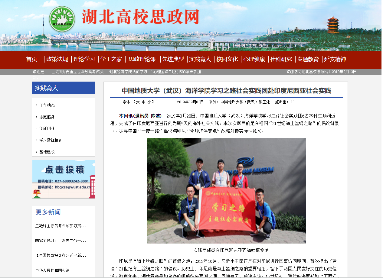 湖北高校思政网、地大新闻网地大之声陆续报道我院社会实践活动。