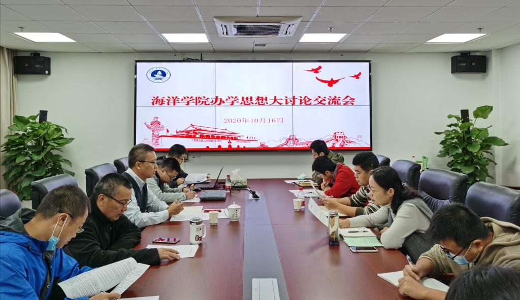 10月16日上午,海洋学院召开办学思想大讨论交流会。学院全体教授、博导,学院班子成员,党委委员,三级单位(含工会、团委)党政负责人参加交流会。会议由党委书记成军主持。