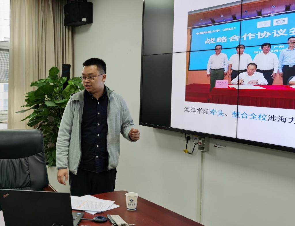 王舟副教授从局校共建意义,共建内容,保障措施和合作成果四个方面介绍了推进学校与广州海洋地质调查局深度合作情况。