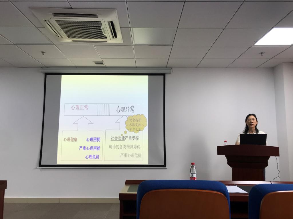 郭老师以“如何识别和帮助心理困难学生”为主题,开始了本次的培训会。郭老师从心理专业的角度为老师们对比了心理健康和心理异常并讲解了心理困扰、心理障碍、心理危机的表现。