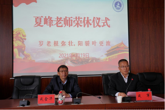 校党委副书记、纪委书记成金华向夏峰老师赠送纪念品