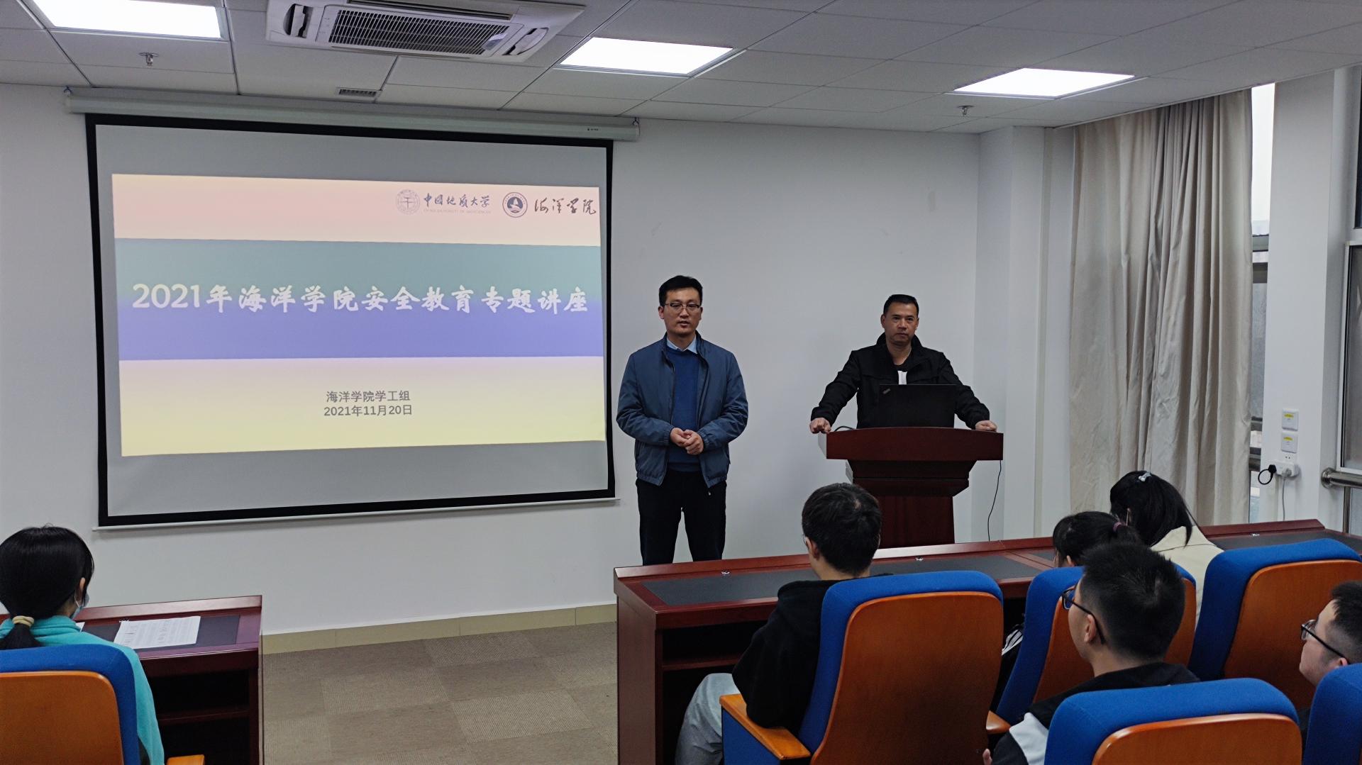 铸牢防火墙,防患于未“燃”。为有效提高学院学生的火灾防范安全意识,掌握火灾事故发生时逃生自救技能。11月20日,海洋学院特邀请安全保卫部消防科刘从贵老师,在东教A1805会议室开展安全教育专题讲座及户外消防演习活动,学院全体本研学生宿舍长参加了此次讲座和活动。会议由学院团委书记陈波主持。