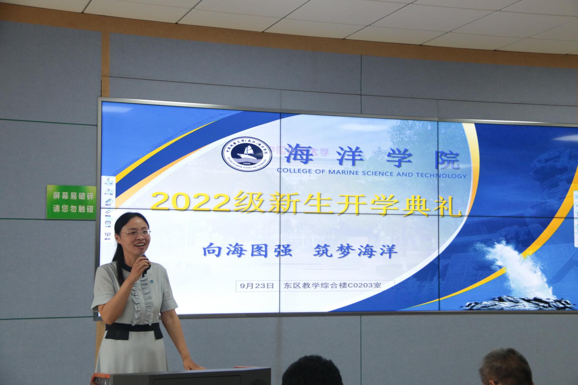 9月23日下午14:30,海洋学院2022级新生开学典礼在东区教学综合楼C0203教室举行。中国地质大学党委副书记唐忠阳、海洋学院班子成员出席活动,学院系负责人、教师代表、新生班主任教师、全体辅导员及2022级本硕博新生参加开学典礼。典礼由海洋学院党委副书记钟苹主持。