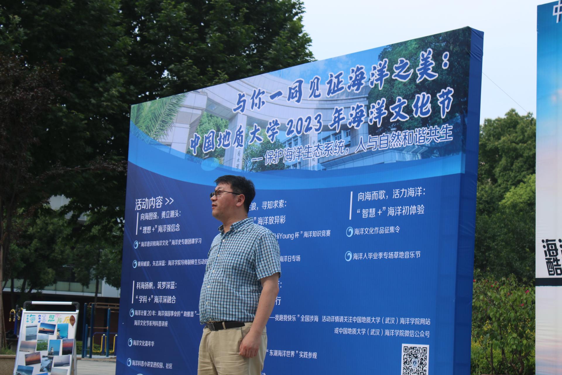 文化节开幕式上,海洋学院院长孙军致辞。他向参加此次文化节的师生表示热烈欢迎。他指出,中国地质大学2023年海洋文化节以“保护海洋生态系统,人与自然和谐共生”为主题,涵盖数十个模块将在全年持续开展系列活动。他面向全校师生发出倡议,积极响应国家海洋强国战略的号召,以实际行动加入到保护海洋生态环境及生物多样性的行列中来。