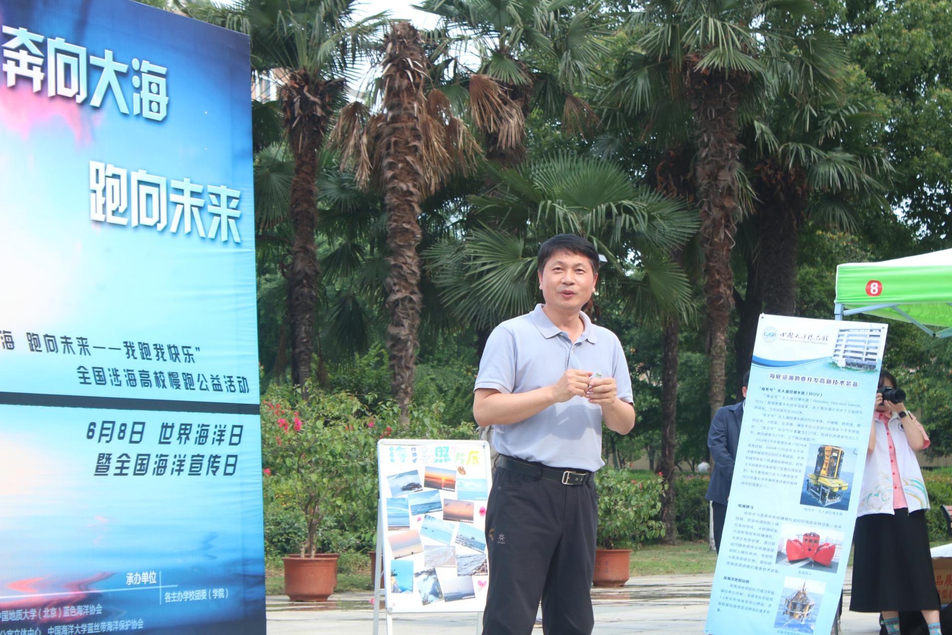 海洋学院副院长、湖北省荆楚好老师陈刚出席启动仪式并致辞。他指出,从青藏高原到长江出海口,河流最终都将汇入大海,我们的日常生活与海洋息息相关。去年自己同学校师生再赴青藏高原开展第二次大学生长江源科考,和十年前相比,长江源头的生态环境明显更好了。希望广大同学能以慢跑活动为契机,继续关心海洋、热爱海洋、经略海洋,学习海洋知识,在求知的海洋里遨游,为祖国海洋强国建设添砖加瓦。