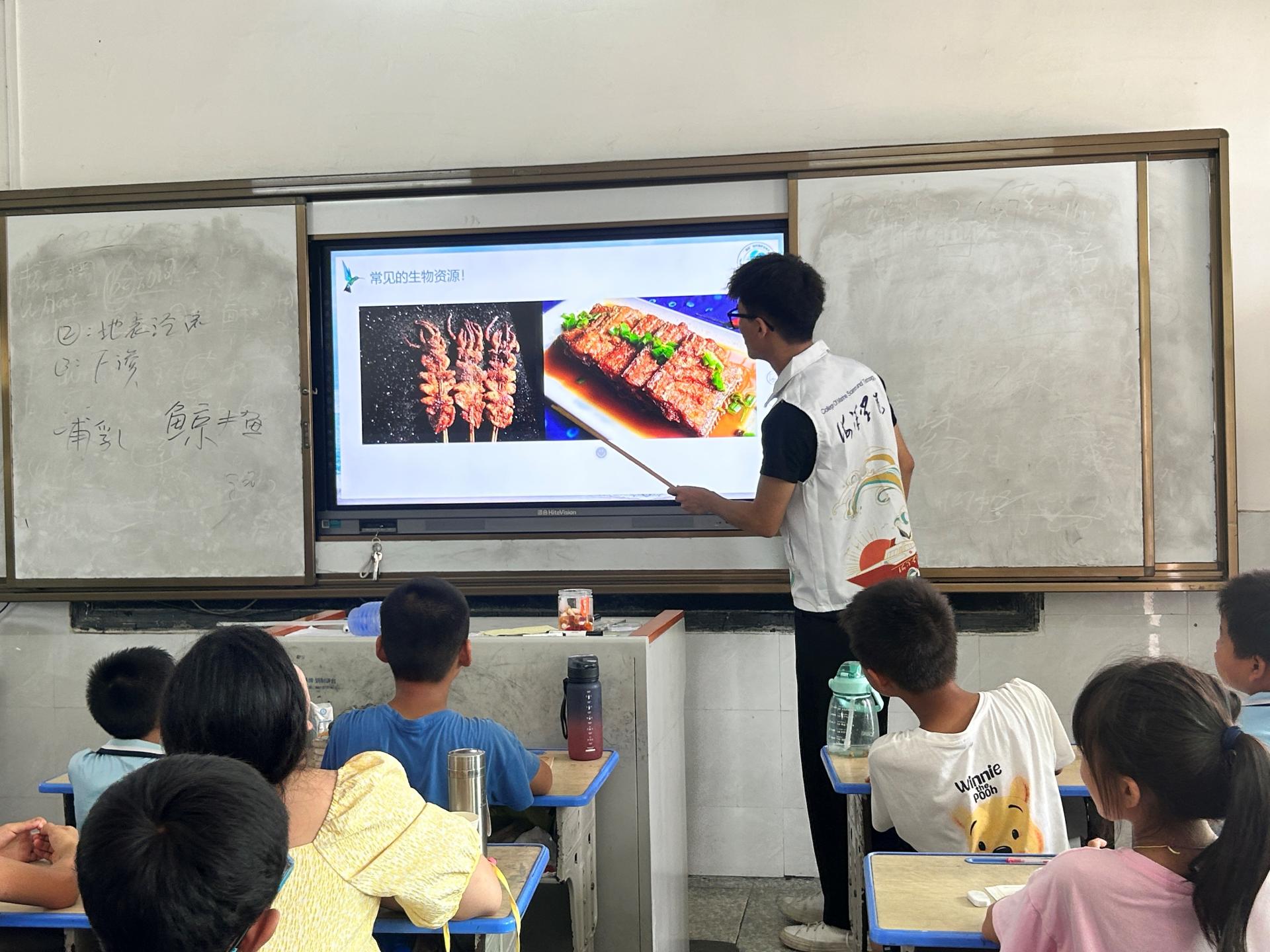 (通讯员:崔影)为全面贯彻习近平新时代中国特色社会主义思想,深入学习宣传贯彻党的二十大精神,深入贯彻落实习近平总书记关于青年工作的重要思想和关于教育的重要论述,引导和帮助广大青年学生在社会课堂中“受教育、长才干、作贡献”,坚定信念听党话、跟党走,努力成长为担当民族复兴大任的时代新人,中国地质大学(武汉)海洋学院蓝点科普志愿服务队秉持“海洋科普进内陆”主题,于2023年7月1日对湖北省黄石市阳新县排市镇石坑村白米田组石坑小学开展海洋科普支教活动。