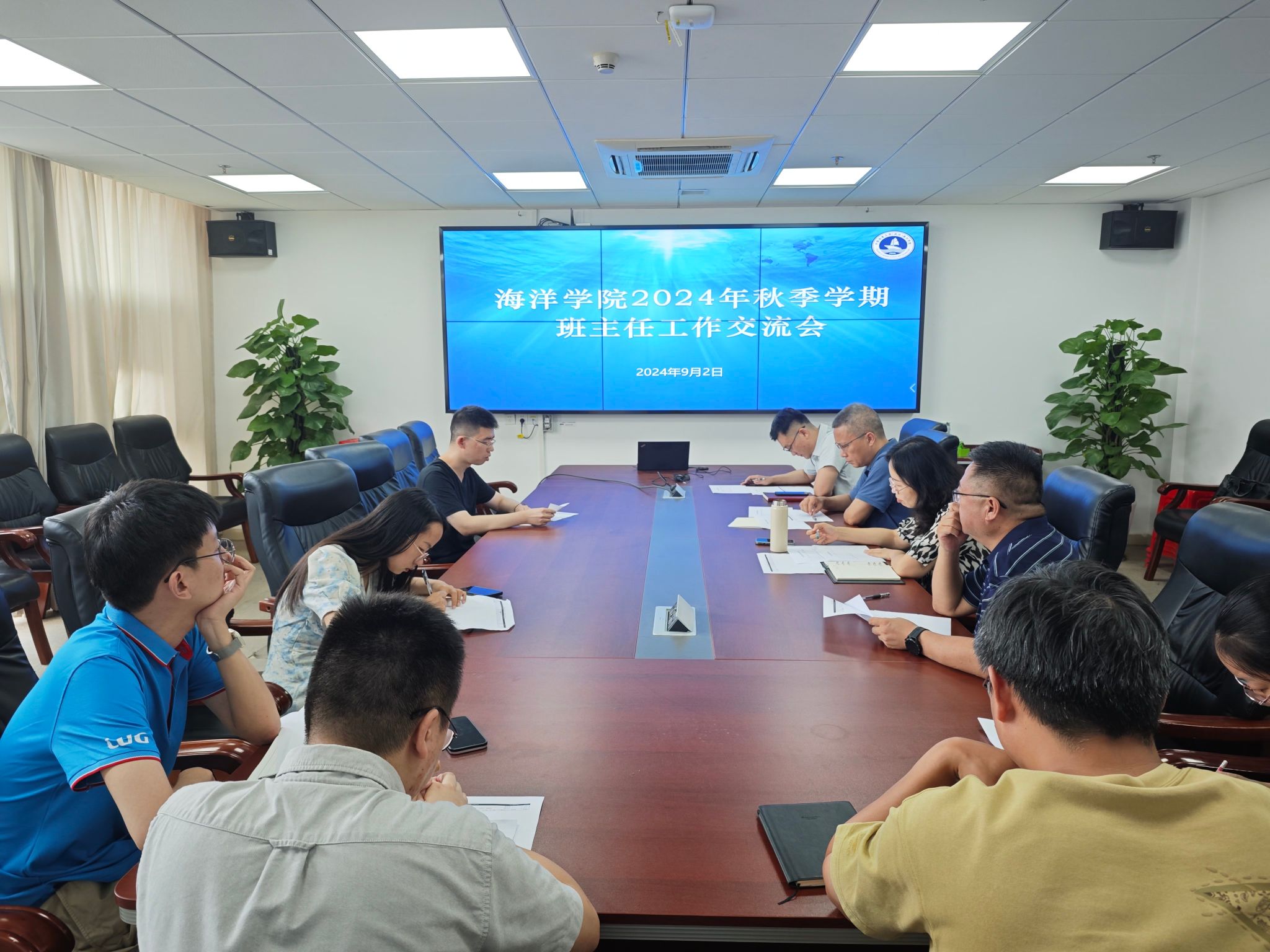 9月2日下午,海洋学院举行新学期班主任工作交流会。2023级本科生班主任和拟竞聘2024级本科生班主任教师参加交流。学院党委书记成军、副书记钟苹、班主任代表郑彦鹏、团委书记陈波参会。党委副书记钟苹主持交流会。