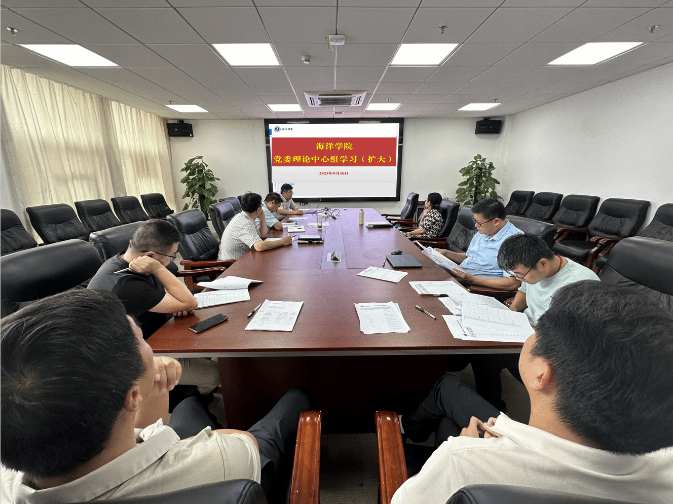 党委副书记钟苹随后领学习近平总书记在纪念中国人民抗日战争暨世界反法西斯战争胜利80周年大会上的讲话精神。她解读了讲话中关于“坚定理想信念”“创新育人实践”“服务国家战略”等核心要义;她谈到,海洋学院作为我国海洋领域人才培养与科研创新的重要基地,需深刻把握讲话精神实质,将其融入学科建设、人才培养和社会服务全链条,在海洋领域能力建设主动担当,以实际行动践行“海洋强国”使命。