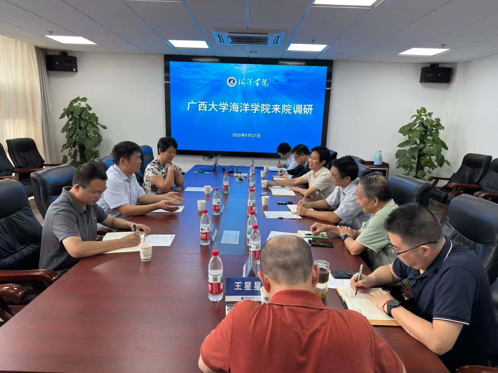 (通讯员 杜清平 审稿 刘国华)9月27日上午,广西大学海洋学院院长余克服、副院长徐向荣、院长助理黄荣永一行来院调研。学院党委书记刘国华,副院长孙启良,海洋科学系、海洋工程与技术系负责人和部分教师代表参加座谈。刘国华书记主持会议。