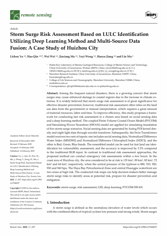 对他而言,科研并非遥不可及的“象牙塔”,而是一场需要耐心与坚持的实践探索。大学期间,他作为第一负责人主持国家级大学生创新创业训练计划项目《“踏浪而行”浪报软件》,作为第一作者发表了一篇EI论文,作为第四作者发表了一篇中科院二区期刊论文。科研过程中的反复试错,让他真正体会到“问题导向”的科研思维,也显著提升了独立思考与解决复杂问题的能力。