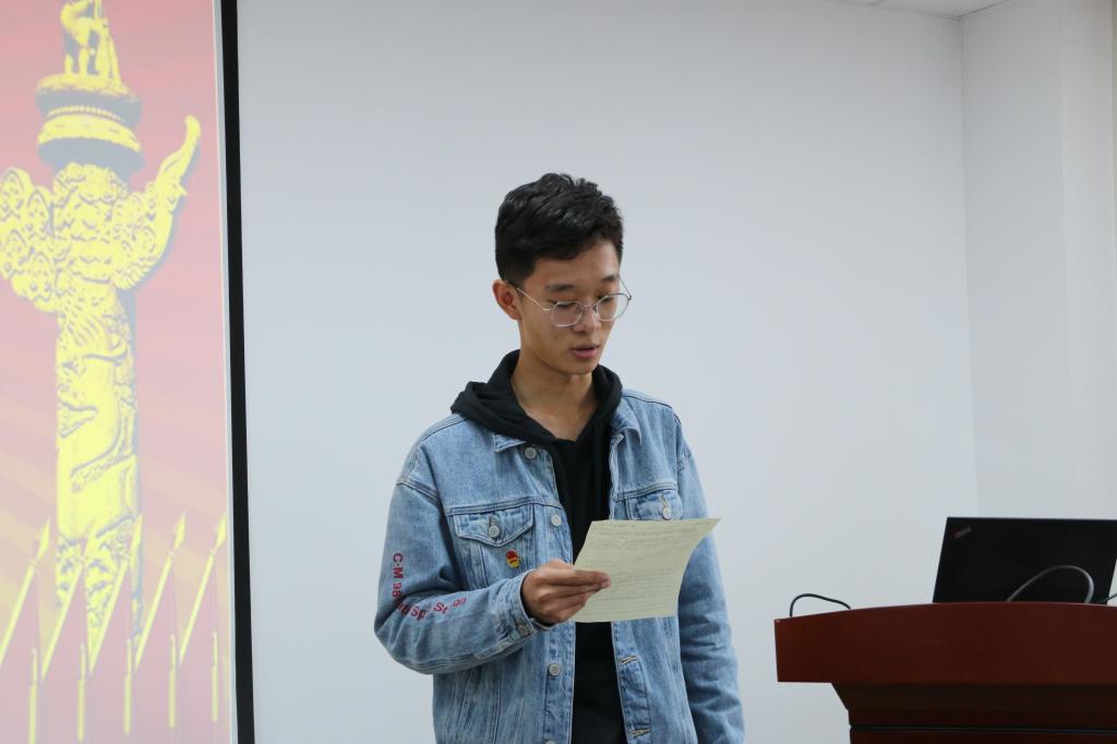 王瀚浦同学列举了在党的带领下中国取得的辉煌成就,表达了他愿与党通行,以小我之力,为祖国添砖加瓦,不忘初心,砥砺前行,为实现中国梦而奋斗。