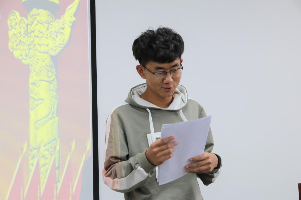 郭航成同学在发言中结合在校园中的感悟,认识到了党的伟大作用,他认为,成为一名优秀的共产党员,其责任感与使命感督促着我们脚踏实地,砥砺前行,为人民幸福、国家富强、民族复兴而奋斗终身。