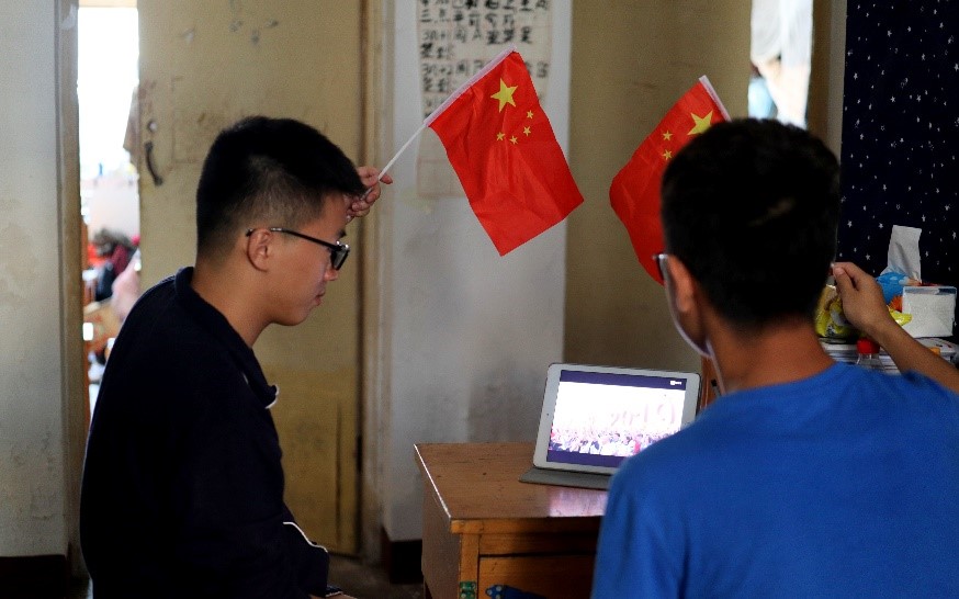 预备党员李凯玥同学表示:“当熟悉的《义勇军进行曲》再次被奏响,我们每个人的心中都翻滚着对祖国深深的热爱之情。党旗、国旗、军旗三旗同框的画面,更是唤醒了每个中国人心中的中华魂。为什么战旗美如画,英雄的鲜血染红了它,如果奇迹有颜色,那么一定是中国红。我为祖国感到无比的骄傲自豪。”