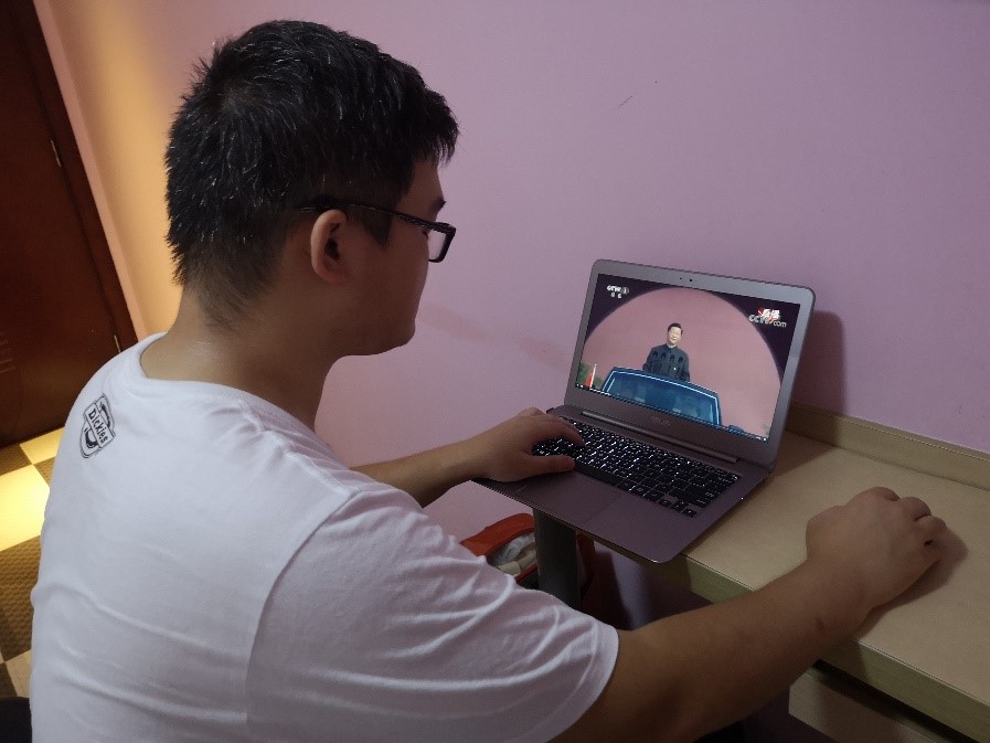 支部党员曾程辉在观看完阅兵式后表示:“观阅兵仪式,心中充满自豪、骄傲,雄狮已经觉醒,没有任何力量能够阻挡中国人民前进的步伐。展望未来的中国,我们必将抓住时代机遇,乘着改革的东风,走好中国特色社会主义道路,带领全国各族人民实现美好幸福的中国梦。”