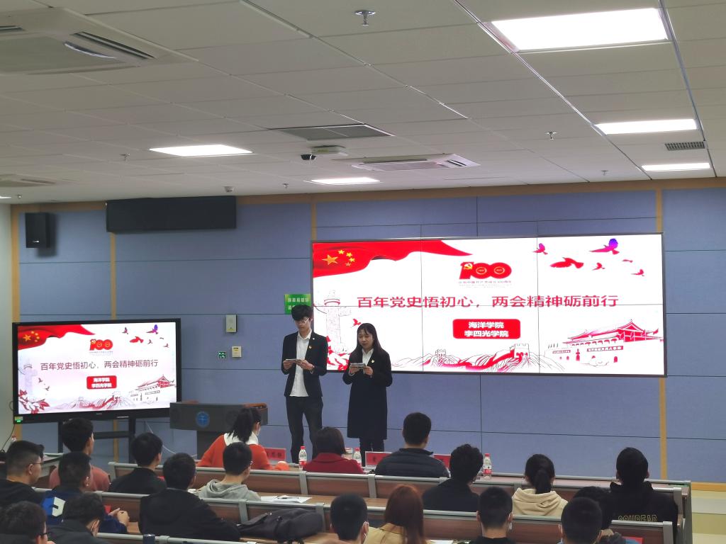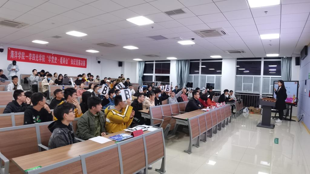 (通讯员 石紫希)为庆祝中国共产党成立100周年和2021年两会的胜利召开,学习好、宣传好、贯彻好习近平新时代中国特色社会主义思想,帮助全体学生学习党史,聚焦时政,开拓学生视野,海洋学院与李四光学院联合在广大学生中组织开展“学党史·看两会”知识竞赛活动。经过初赛笔试的激烈角逐,最终两学院共产生12支队伍进入决赛。决赛于2021年4月2日晚19:00于东教楼C0106举行,李四光学院副院长曾希,海洋学院辅导员陈波,李四光学院辅导员陈思静参加了此次活动。