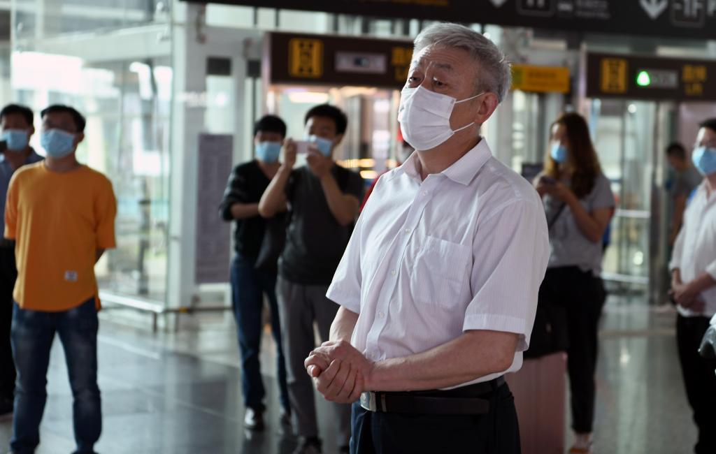 6月3日下午,2020珠峰高程测量登山队3名地大勇士从拉萨返回武汉。中国地质大学(武汉)副校长傅安洲,海洋学院党委书记成军、体育学院院长董范和部分师生代表到武汉天河国际机场迎接。