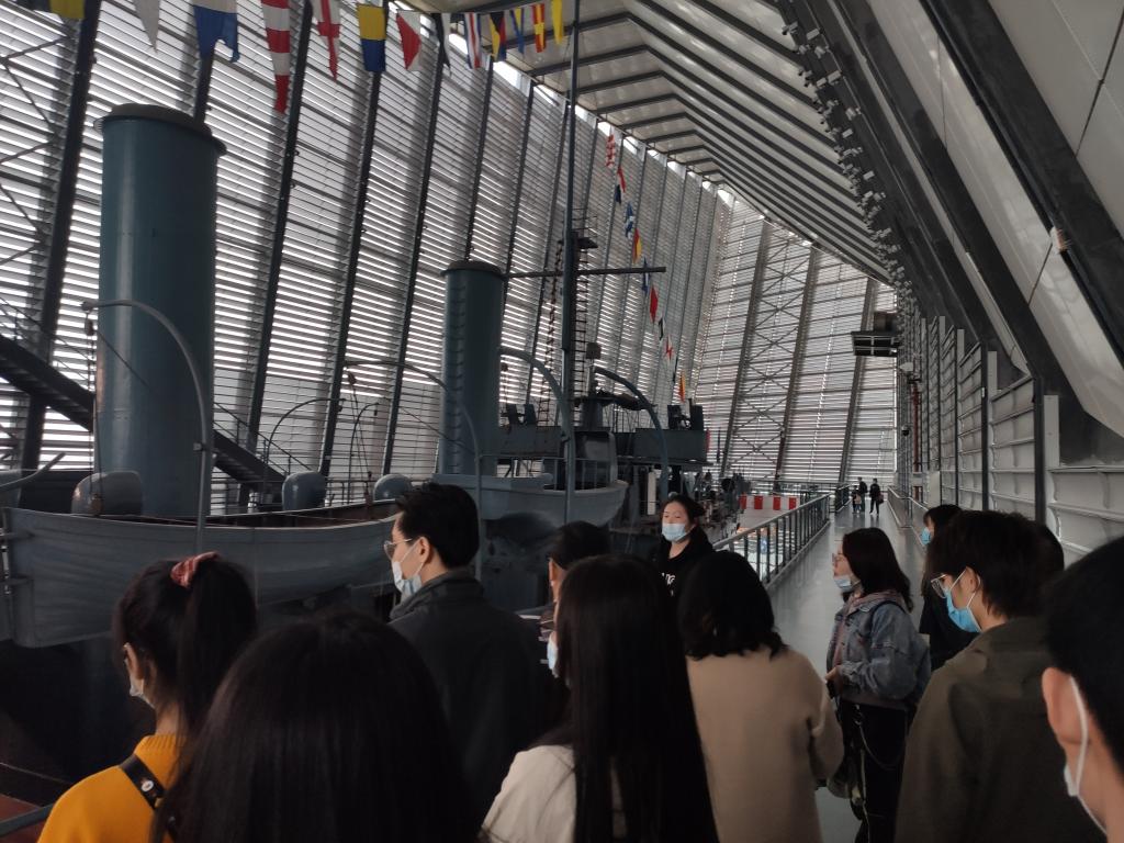 2018级研究生党员李文睿:踩着临近研究生毕业的尾巴,和海洋学院青马工程班的学弟学妹前往中山舰博物馆进行参观。中山舰1912年购于日本,1913年纳入海军战队,193810月临时调配同日军进行武汉会战,右舷IX吃水线下遭受重创,就此沉入江底直至相关部门将其打捞修缮后陈列于此。我本人对军舰知之甚少,遂在讲解员集中统一进行参观讲解前,跟在两位对军事、历史、器械等方面侃侃而谈的师弟旁,听着他们对于战争、军舰的讨论,对我国军事力量飞速发展壮大的毫不掩饰的骄傲,可不正谓我辈少年当自强!