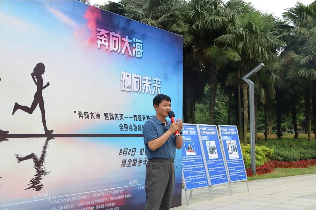 海洋学院副院长、2020年湖北省荆楚好老师、2020年珠峰高程测量队员陈刚老师出席启动仪式并致辞。他表示,2021年6月8日是第十三个世界海洋日暨全国海洋宣传日,今年海洋日的主题是“保护海洋生物多样性,人与自然和谐共生”,旨在呼吁全社会在习近平海洋强国思想和生态文明思想的指引下,引导公众和大学生树立海洋强国和生态文明的理念。希望广大同学们能够以慢跑活动为契机,继续关心海洋、热爱海洋、经略海洋,学习海洋知识,在求知的海洋里遨游,为祖国海洋强国建设舔砖加瓦。