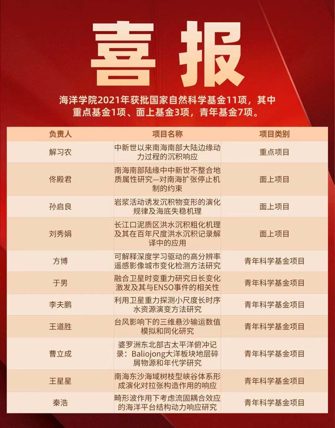 热烈祝贺我院获批2021年国家自科基金11项