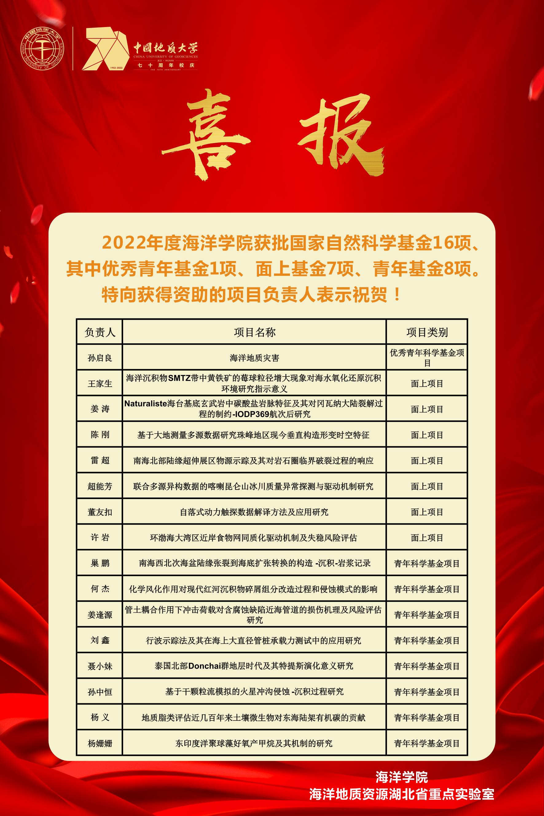 喜报!热烈祝贺我院获批2022年度国家自科基金16项