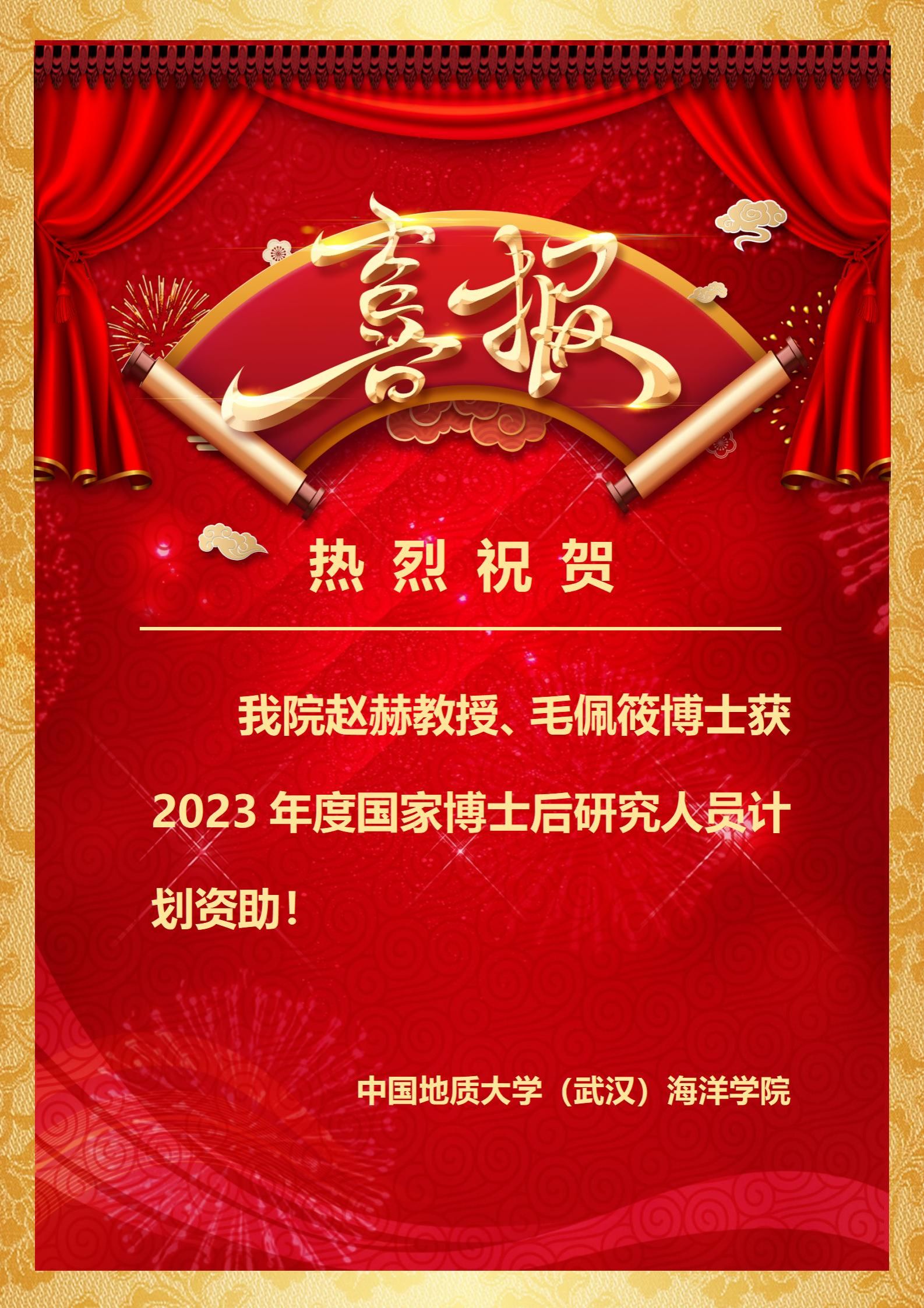 喜报!我院赵赫教授、毛佩筱博士获2023年度国家博士后研究人员计划资助