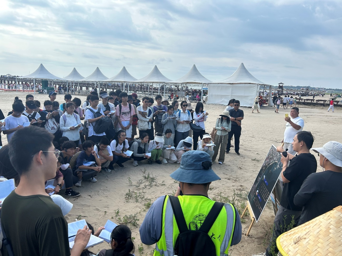河北省海洋地质资源调查中心王琰在浅水湾浴场为我院师生介绍海岸带修复
