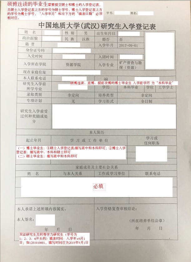 核对相关内容,确认无误后本人签字。请大家在《研究生入学登记表》上签字时请注意,签字时间应和表上的“入学日期”显示的时间一致,详见附件二。 学生导出:培养管理—学期注册信息管理—导出《研究生入学登记表》 |