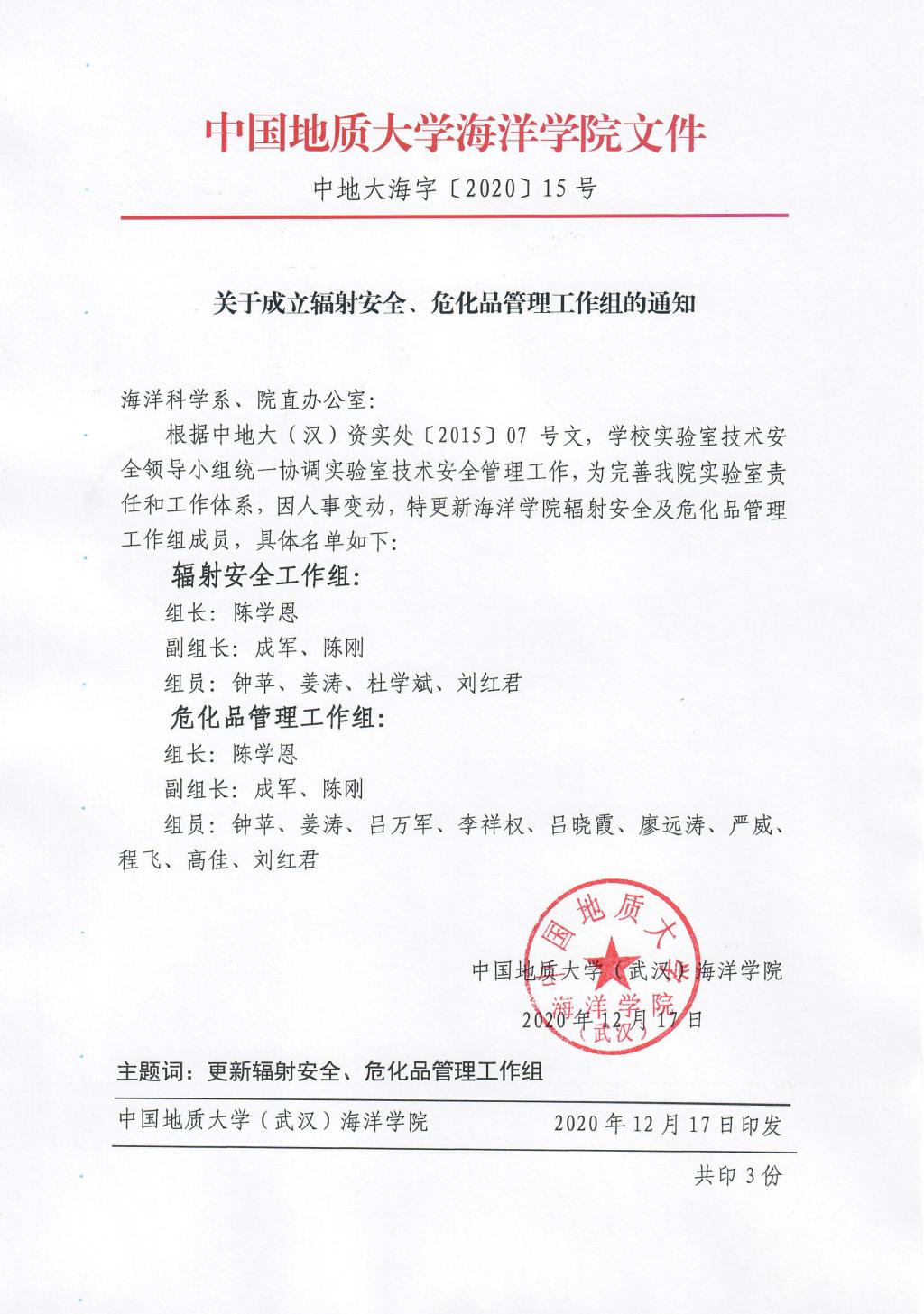 海洋学院成立辐射安全、危化品管理工作组