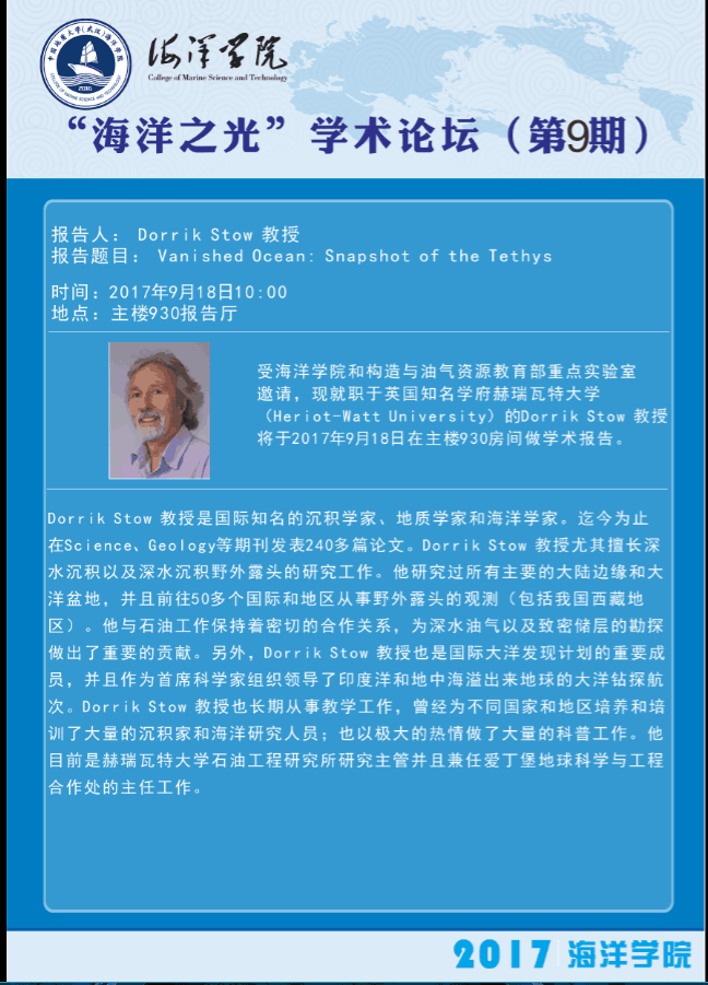 “海洋之光”学术论坛(第9期)——Dorrik Stow