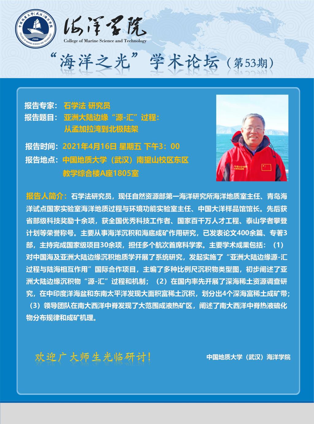 “海洋之光”学术论坛(第53期)——石学法
