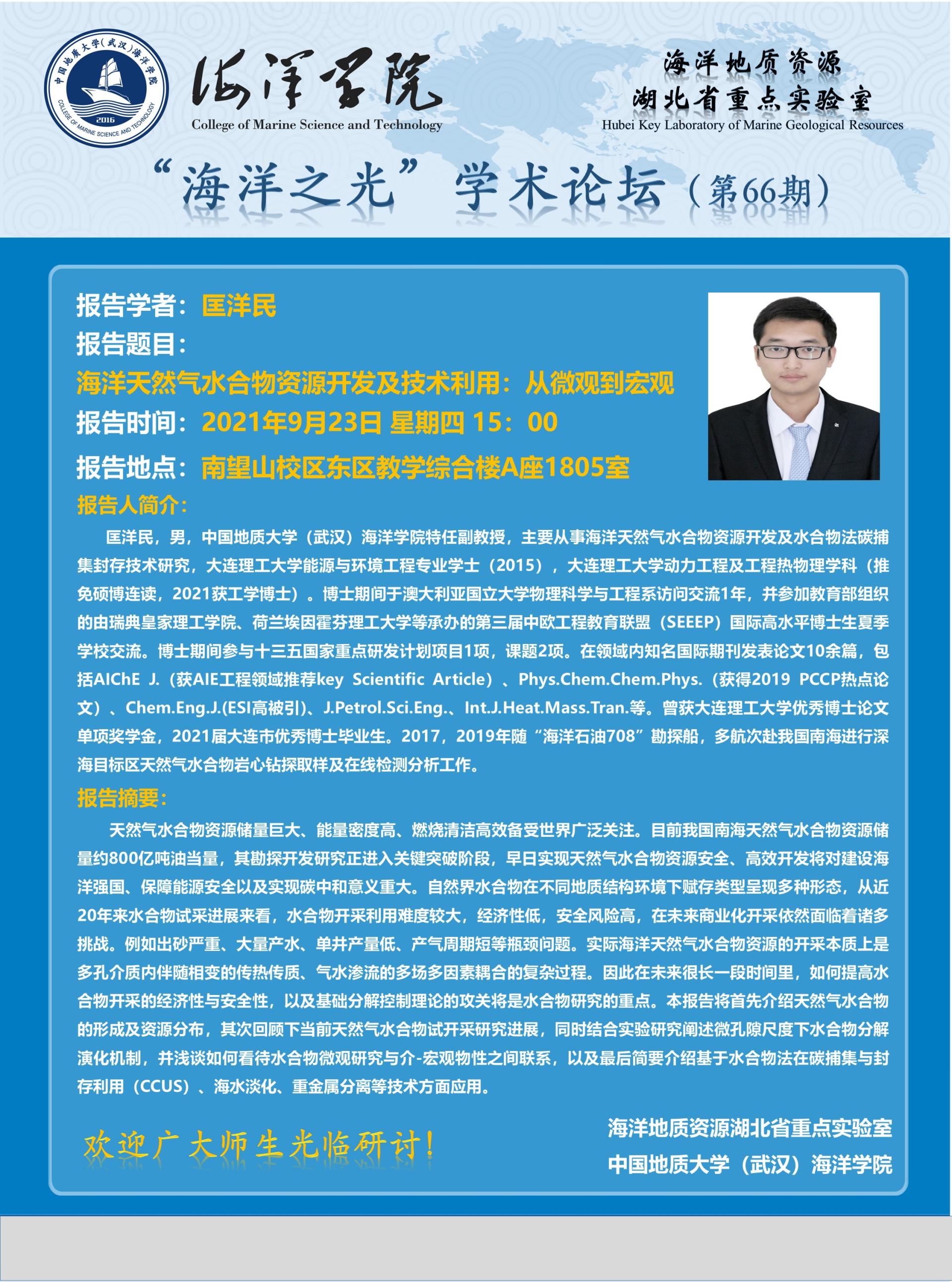 “海洋之光”学术论坛(第66期)——匡洋民