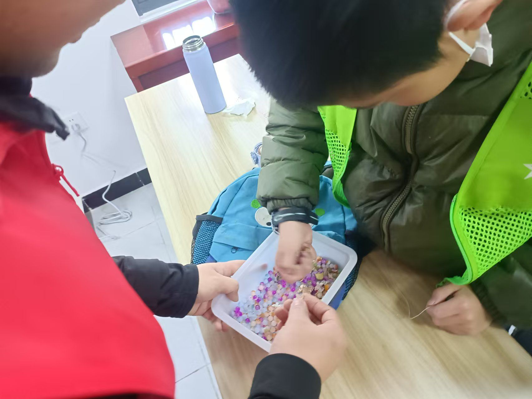 为突破传统科普模式,团队创新设计"科普+美育"实践体系。在手工游戏里,孩子们将天然矿物珠串制成手链,用彩笔描绘心中"最酷的远古生物"。小朋友举着自制的菊石化石拓印画说:"原来石头里藏着这么多故事!"