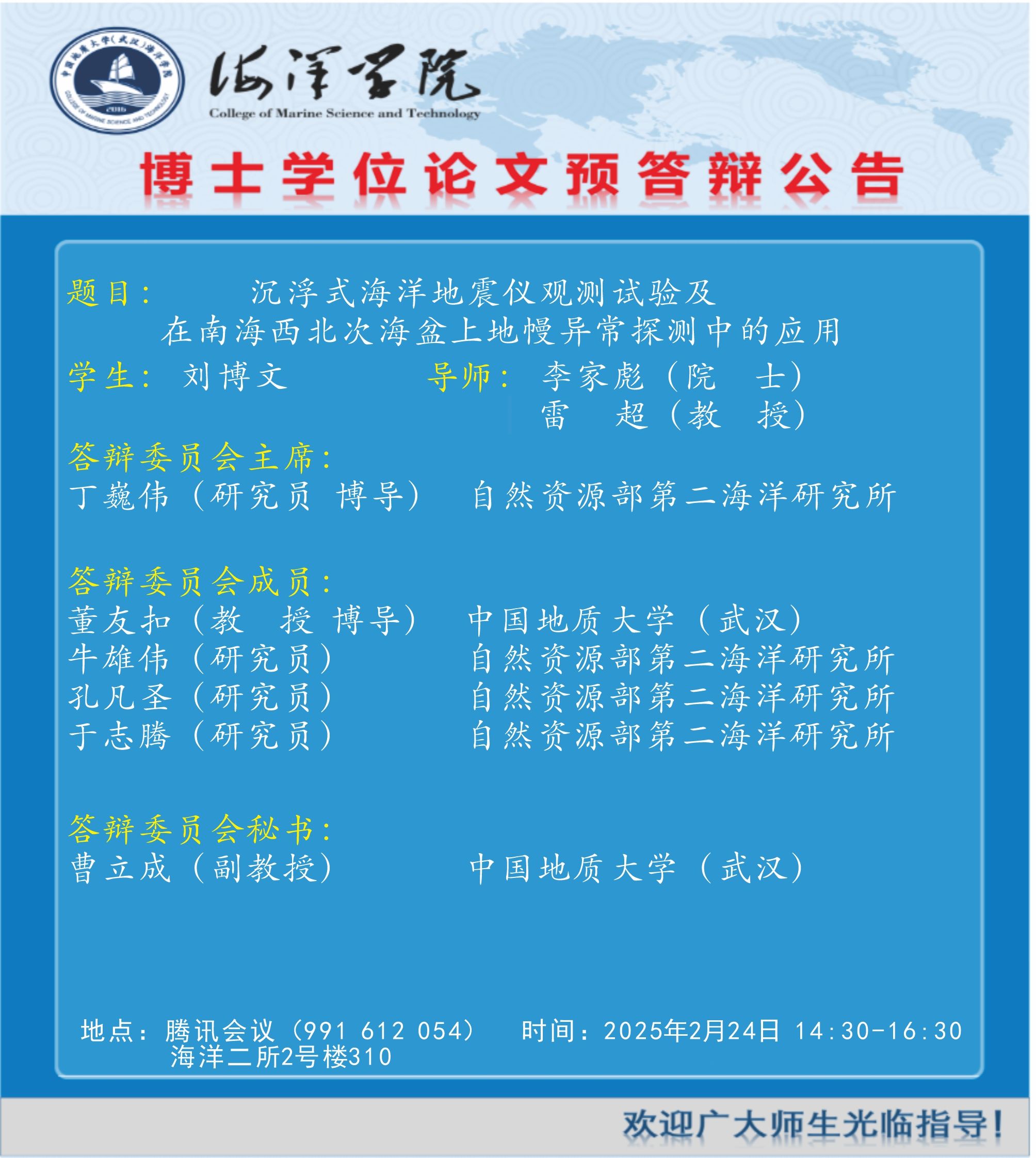 海洋学院2025年春博士学位论文预答辩公告(2月24日)
