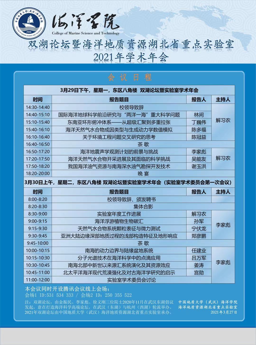海洋地质资源湖北省重点实验室2021年学术年会暨第一届“双湖论坛”学术交流会